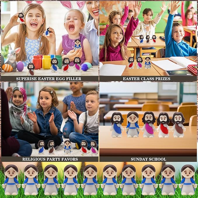 - Applicable scenarios: Mini Jesus Figures are used for Easter, religious party presents, church Easter egg hunting, religious activities, and other occasions. Mini appearance, you can place it outdoors and indoors for decoration or play.
