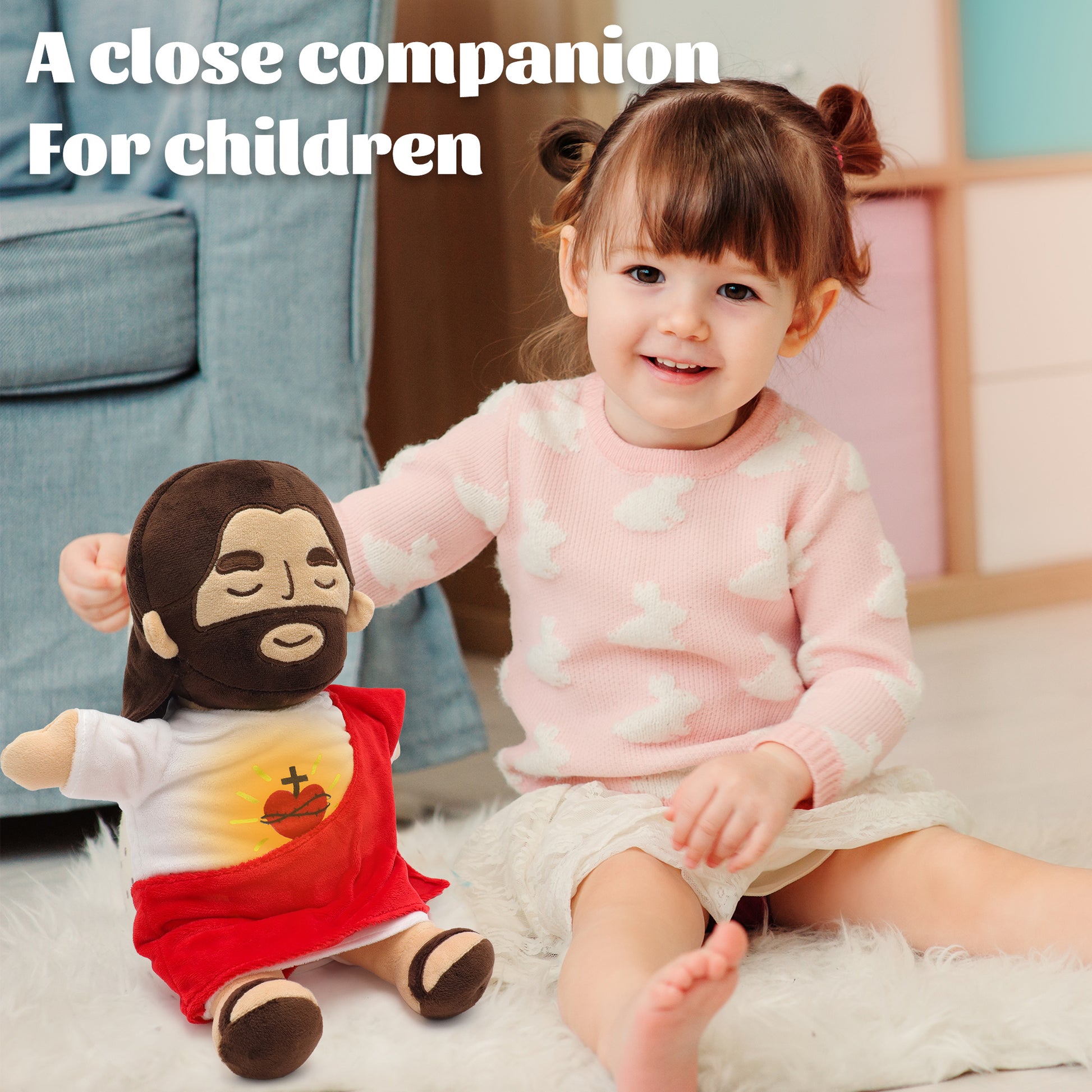 - [Meaningful Gifts] The breathing soothing Jesus plush can be used as great baptismal gifts for boys or girls, as their guardian plush, or as a baby's first stuffed animal or prayer doll to keep them company. My Friend Jesus Stuffed Animal can also comfort children who have experienced hardship and ease anxiety and depression.