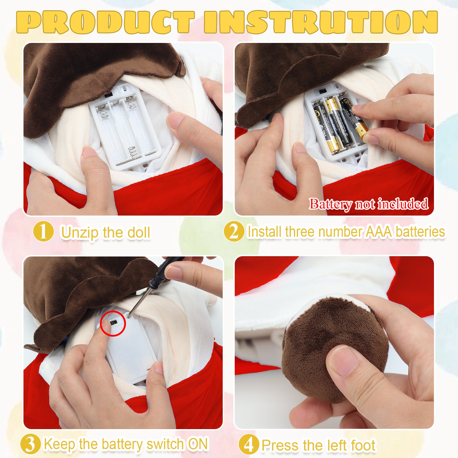 - How to Operate: Batteries are not included. Please install 3 number AAA batteries inside the back of the doll. Ensure the battery switch at the back is set to "ON" (do not leave it in the "OFF" position).