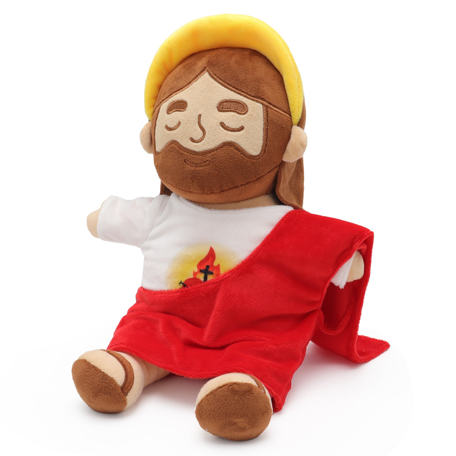Breathing Jesus Plush Toy with Yellow Halo - Red and Brown