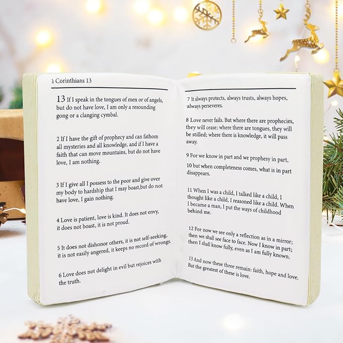 - Size: This Bible book plush pillow measures 13 "x9.05" x4.33 ", making it perfect for hugging, accompanying, decorating for Christmas and Easter. It is an ideal gift for Christian believers.