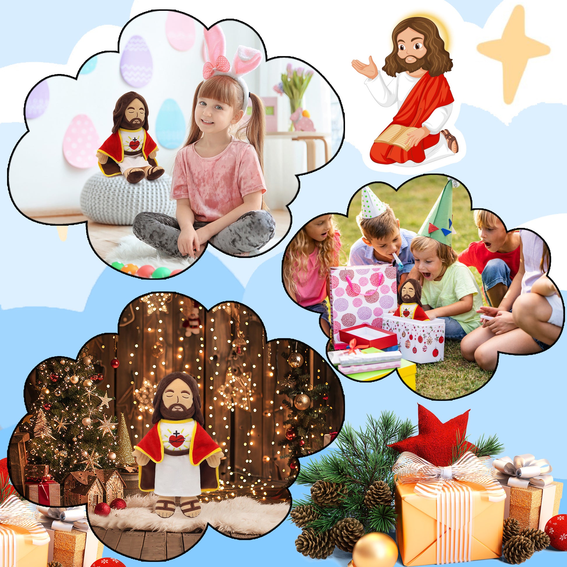 - Uses: This Jesus plush doll is the perfect size for hugging and carrying around.It brings joy and comfort to both children and adults alike. Is ideal for Christmas decorations, Easter decorations, Easter or Christmas gifts for children, and can also be used as props for religious parties.