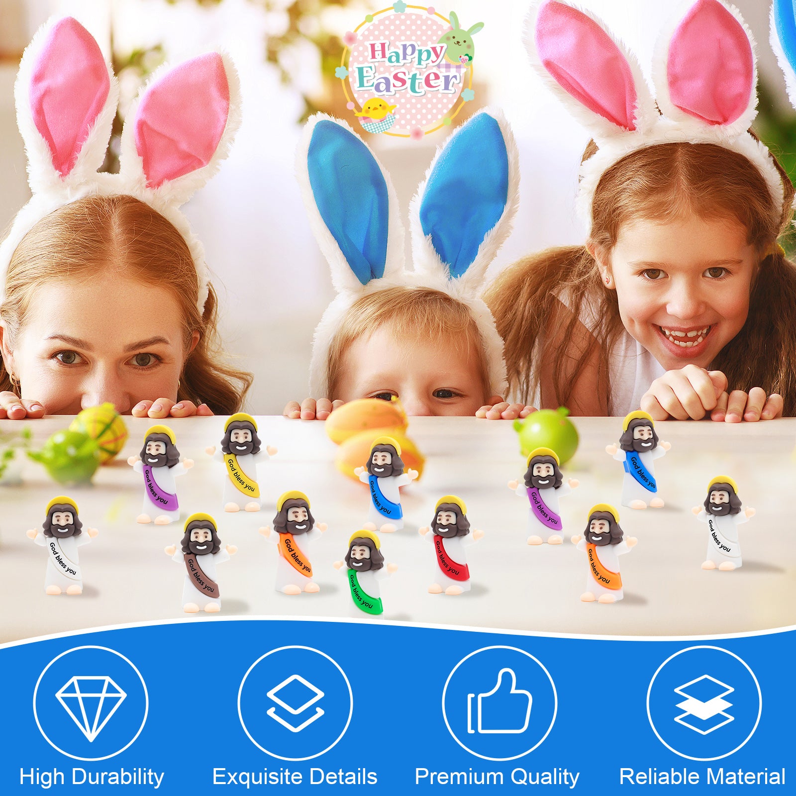 - Unique Color Combination:This mini jesus figurines in bulk offers 4 colors (Red, Blue, Yellow, Purple), allowing for personalized combinations for any religious event, party, or home decoration.