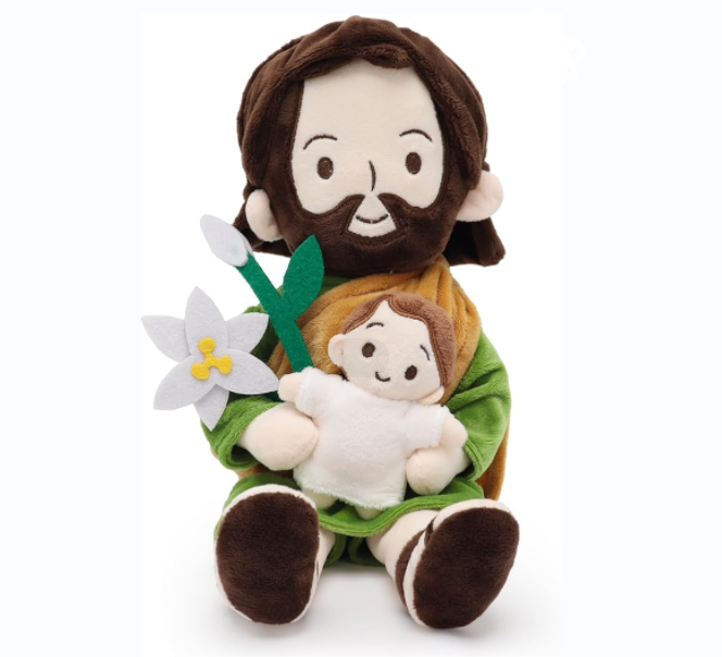 - 【High Quality Material】This Saint joseph plush is made of soft plush.It is fluffy,skin-friendly and soft to touch. Officially authorized by Yelakey.Lilies are handmade.The white lilies on St. Joseph's tunic represent his purity. The lilies and baby make this piece even more precious.